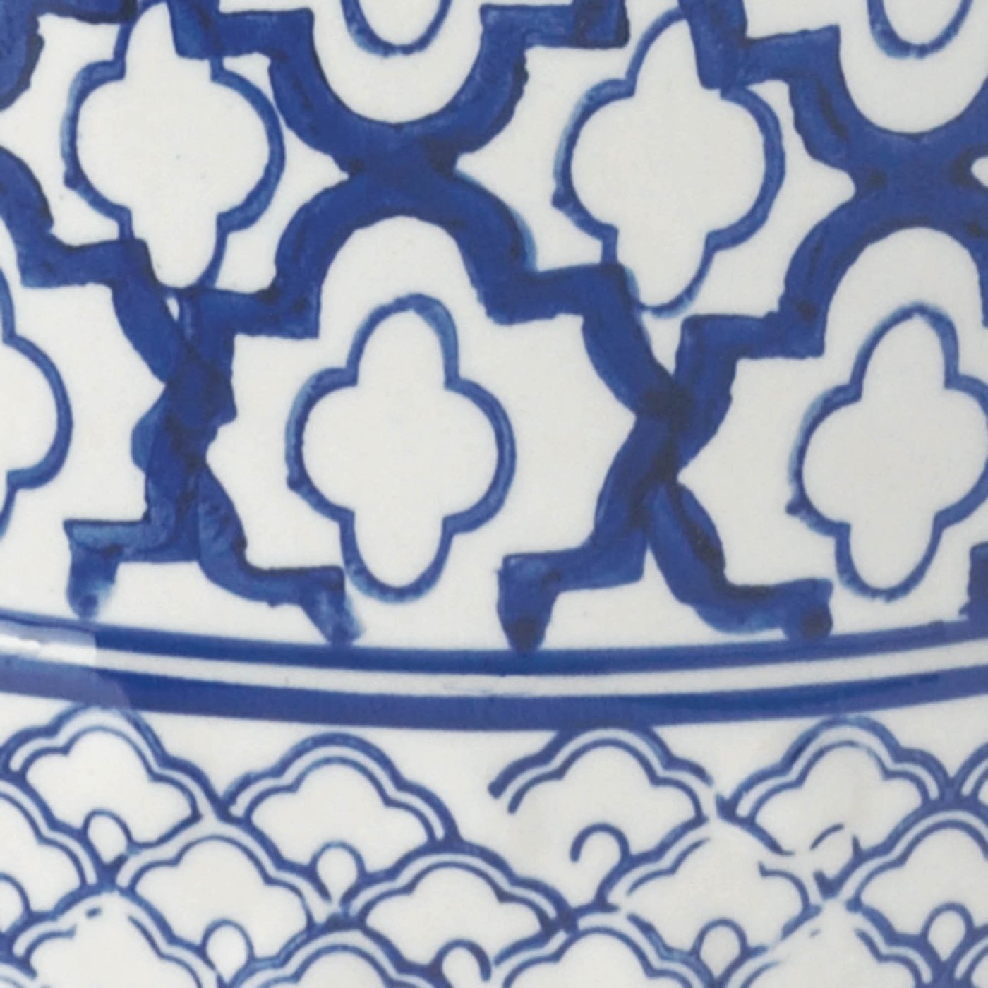 • This ceramic decorative stool features a white background that's decorated with a varying blue pattern that you'll love. Use it in your living room, bedroom, dining area, and even outside on your patio! Maximum weight limit: 220 lbs.