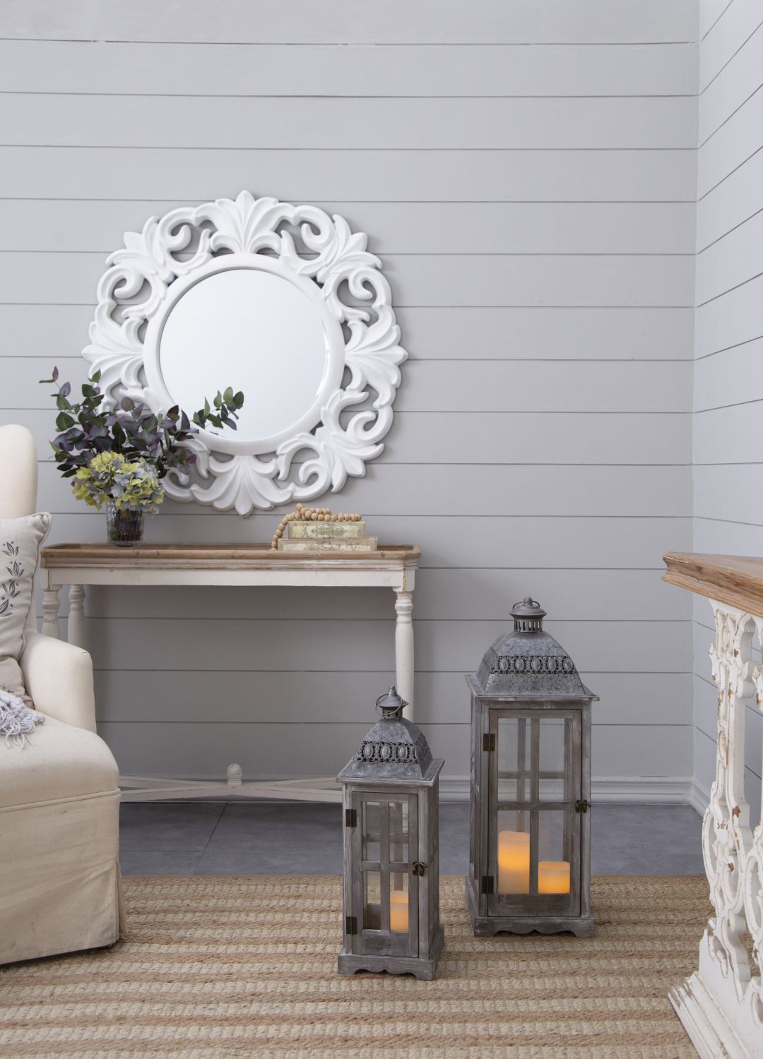 This set of two gray-finished Urban Scape Lanterns offers plenty of options for decor and display. Not only are these lanterns perfect for highlighting decorative candles, they also make lovely terrarium-like homes for miniature potted plants and succulent arrangements. Each one is made from a traditional glass and wood frame with an adorable metal roof.